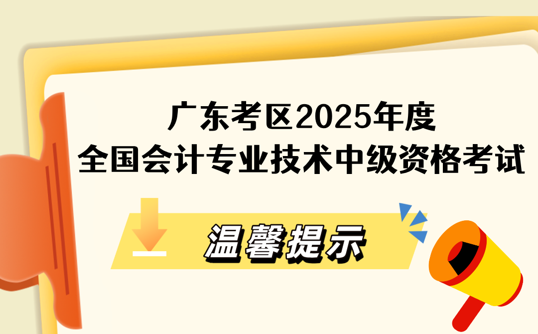广东考区2025年度全国会计专业技术中级资格考试温馨提示