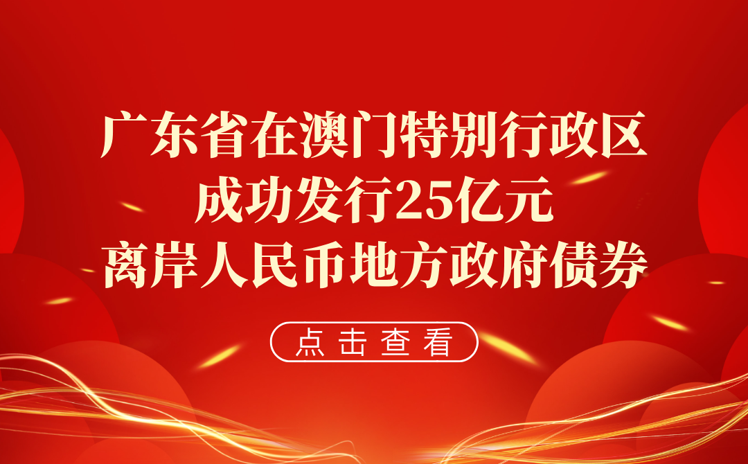 广东省在澳门特别行政区成功发行25亿元离岸人民币地方政府债券